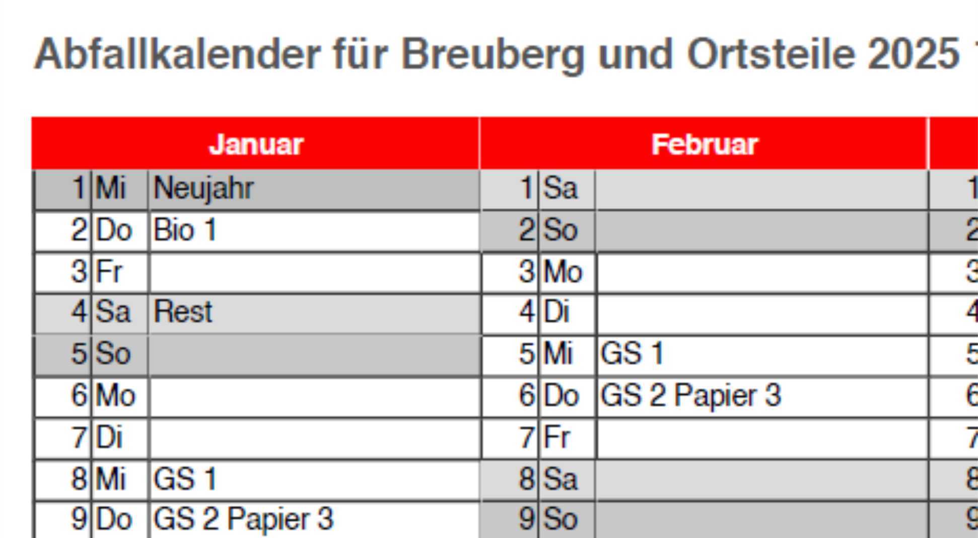 Veranstaltungskalender