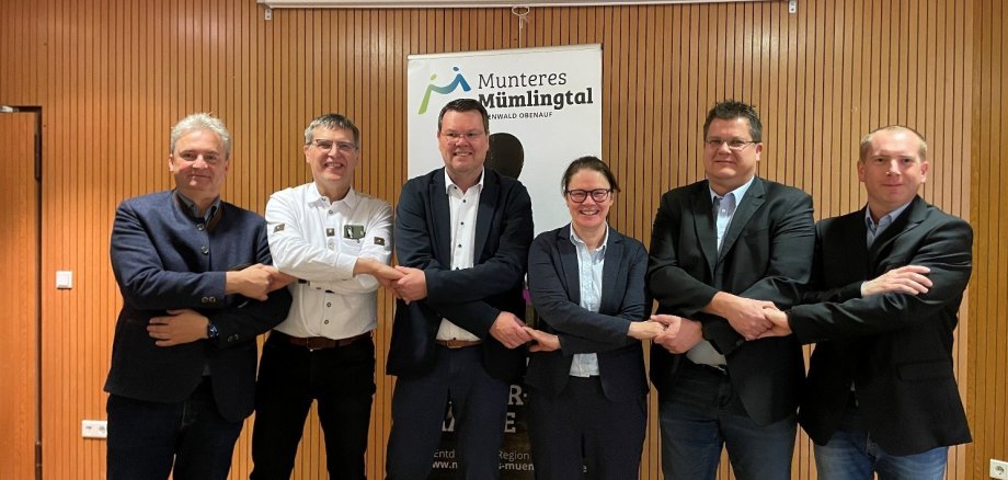 Bildunterschrift: Gemeinsam für eine starke Region, mit neuer Marke, frischer Kommunikation und echtem Wir-Gefühl in die Zukunft: v.l. meine Bürgermeisterkollegen Andreas Koch (Brombachtal), Siegfried Scholtka (Mömlingen), Jens Fröhlich (Höchst i. Odw.), Tassilo Schindler (Lützelbach), Frank Hofferbert (Bad König) und ich. (Foto: TAG Munteres Mümlingtal)