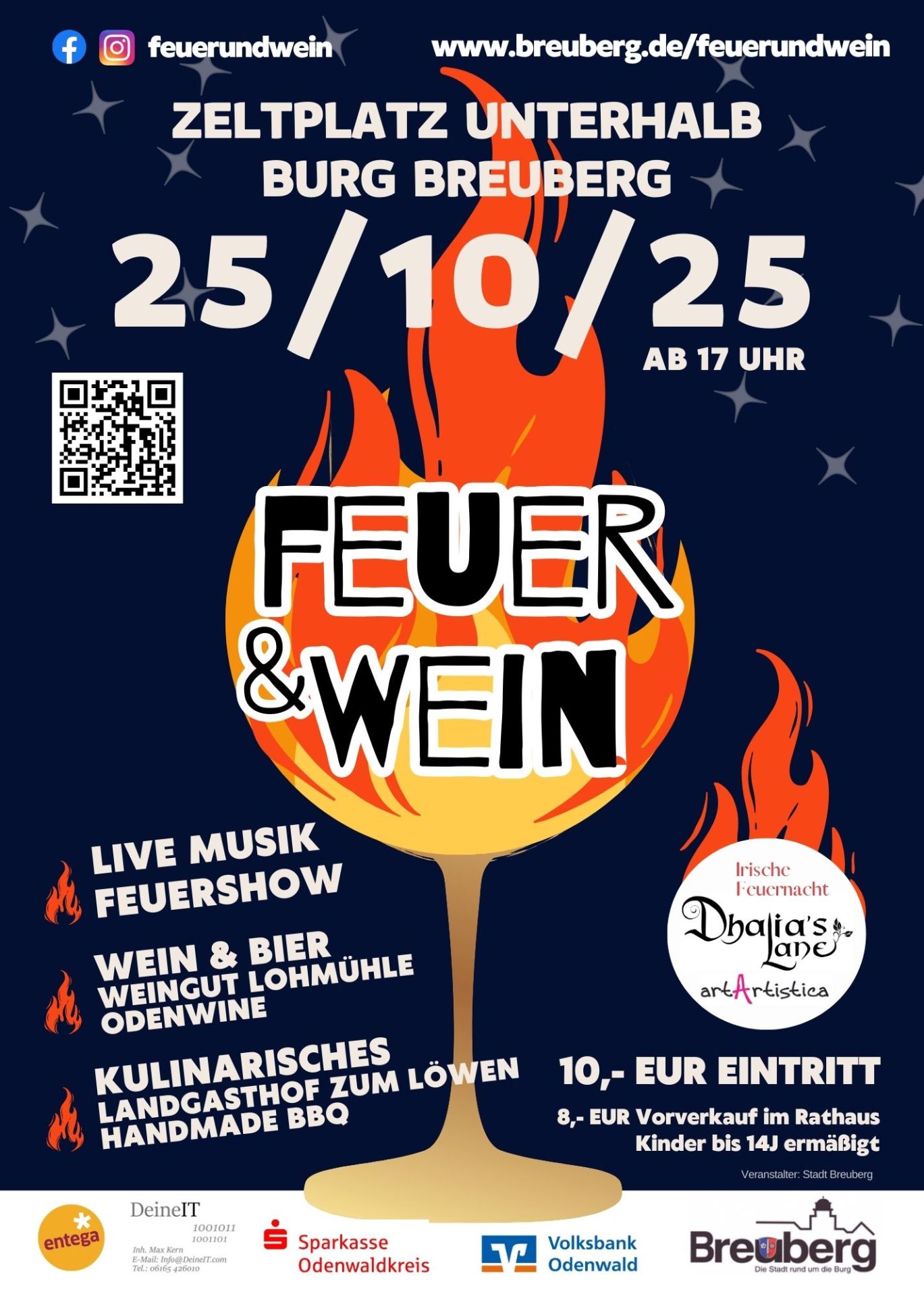 Der Vorverkauf für unser diesjähriges Feuer&Wein beginnt bereits im Mai: Feuer&Wein „Frühlingsgefühle" am 17. Mai im Rathausinnenhof in Breuberg-Neustadt (Marktplatz 6). Ab 18 Uhr gibt es hier Tickets zum Early Bird Preis für die Feuer&Wein am 25. Oktober. Die Early Bird Tickets zum Preis von 7,- Euro gibt es nur an diesem Abend in Neustadt (Abendkasse 10,- Euro). Natürlich ist auch Feuer & Wein vor Ort: Bei entspannter Musik, Kerzenschein und den Weinen vom Weingut Lohmühle kommen garantiert Frühlingsgefühle auf. Für das leibliche Wohl ist bestens gesorgt. Die Stadt Breuberg lädt herzlich ein...